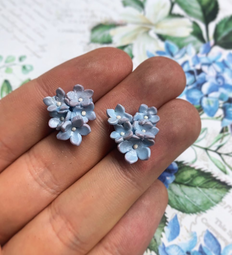 Ez a kifinomult, kézzel készített hortenzia ihlette bedugós fülbevaló tökéletes választás, ha egyedi, elegáns kiegészítőre vágysz. A halványkék és lila árnyalatok lágy keveréke, valamint az apró fehér gyöngyszerű középpontok természetes és harmonikus megjelenést kölcsönöznek a fülbevalónak.