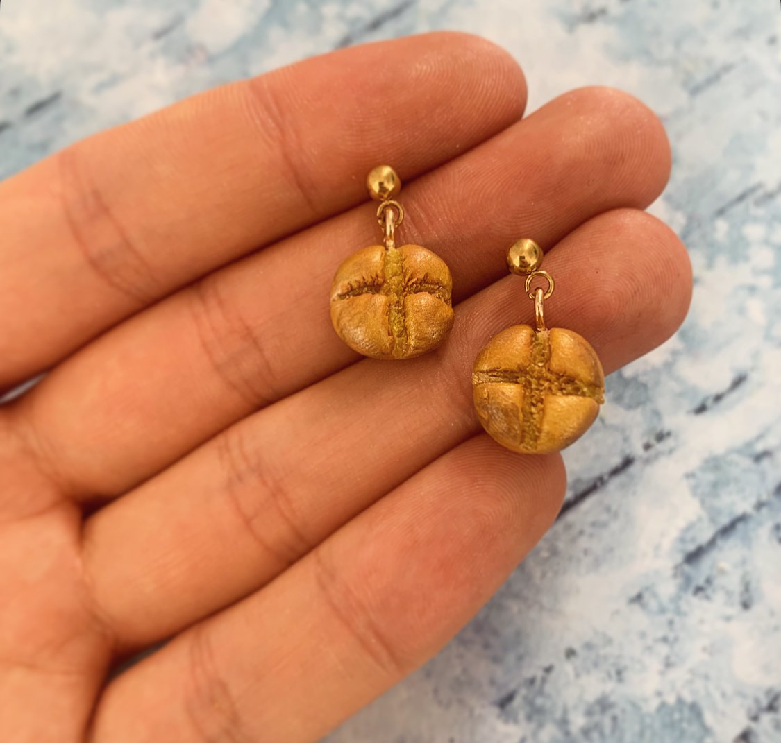 Ez a lógós fülbevaló a klasszikus kenyércipó formáját idézi, aprólékos kidolgozással és aranybarna színekkel. A kézzel készült polymer clay kiegészítő az ezüst akasztónak köszönhetően elegáns és modern hatást kelt. Kiváló választás mindennapi stílushoz vagy különleges alkalmakra, miközben egyedi, játékos megjelenést biztosít. Hozd magaddal a pékség varázsát ezzel a gyönyörű cipós fülbevalóval!