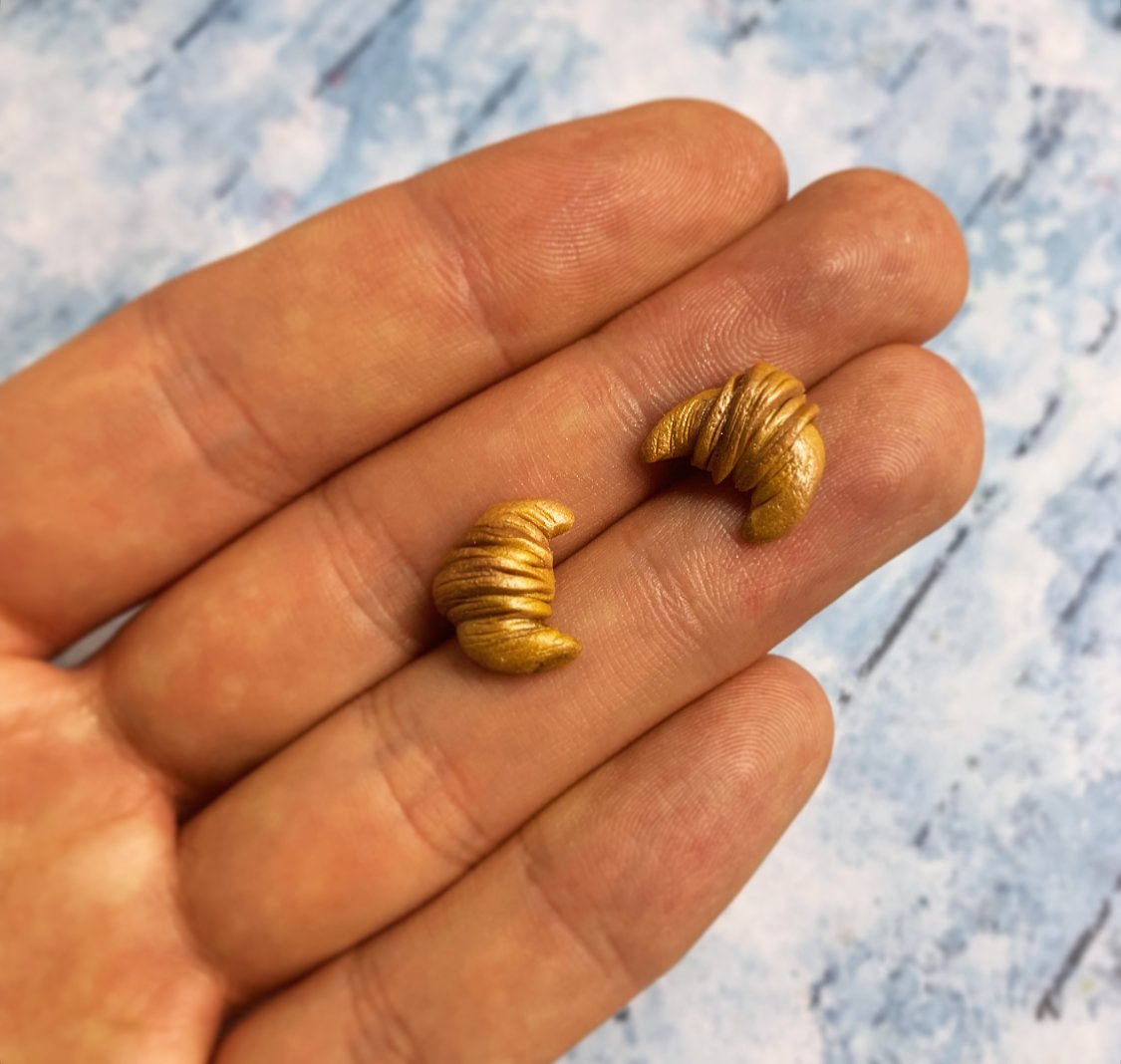 Ez a kézzel készült polymer clay fülbevaló a friss croissant hangulatát idézi meg. Az aprólékosan kidolgozott rétegek és az aranybarna árnyalat élethű megjelenést biztosítanak, miközben könnyed, kényelmes viseletet nyújtanak. Tökéletes választás mindennapi megjelenéshez vagy ajándékként azoknak, akik szeretik a különleges, játékos kiegészítőket.