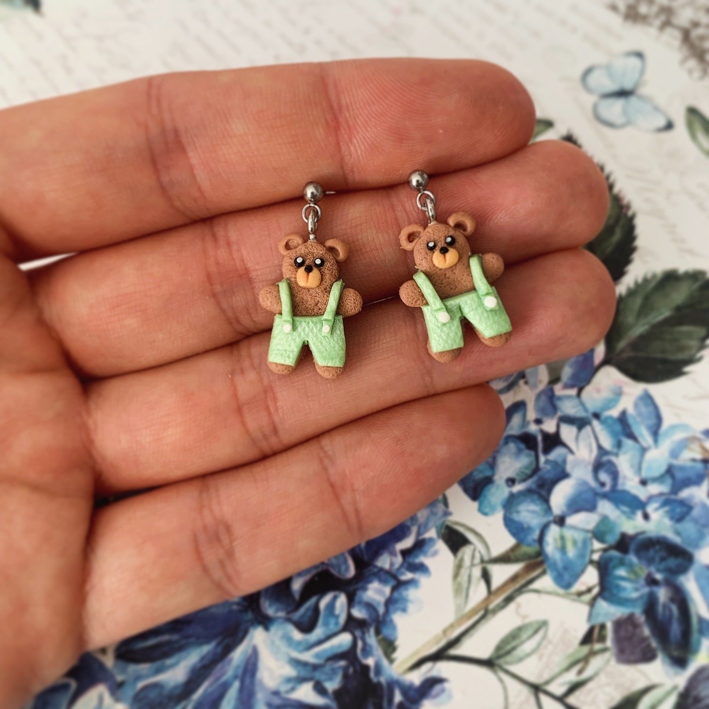 Cuki és szeretnivaló mackófigurás fülbevaló, amely zöld nadrágjával vidám és barátságos stílust kölcsönöz viselőjének. Ezek a gondosan, kézzel készült ékszerek garantáltan különlegessé teszik a megjelenésed, és örömet hoznak a hétköznapokba.