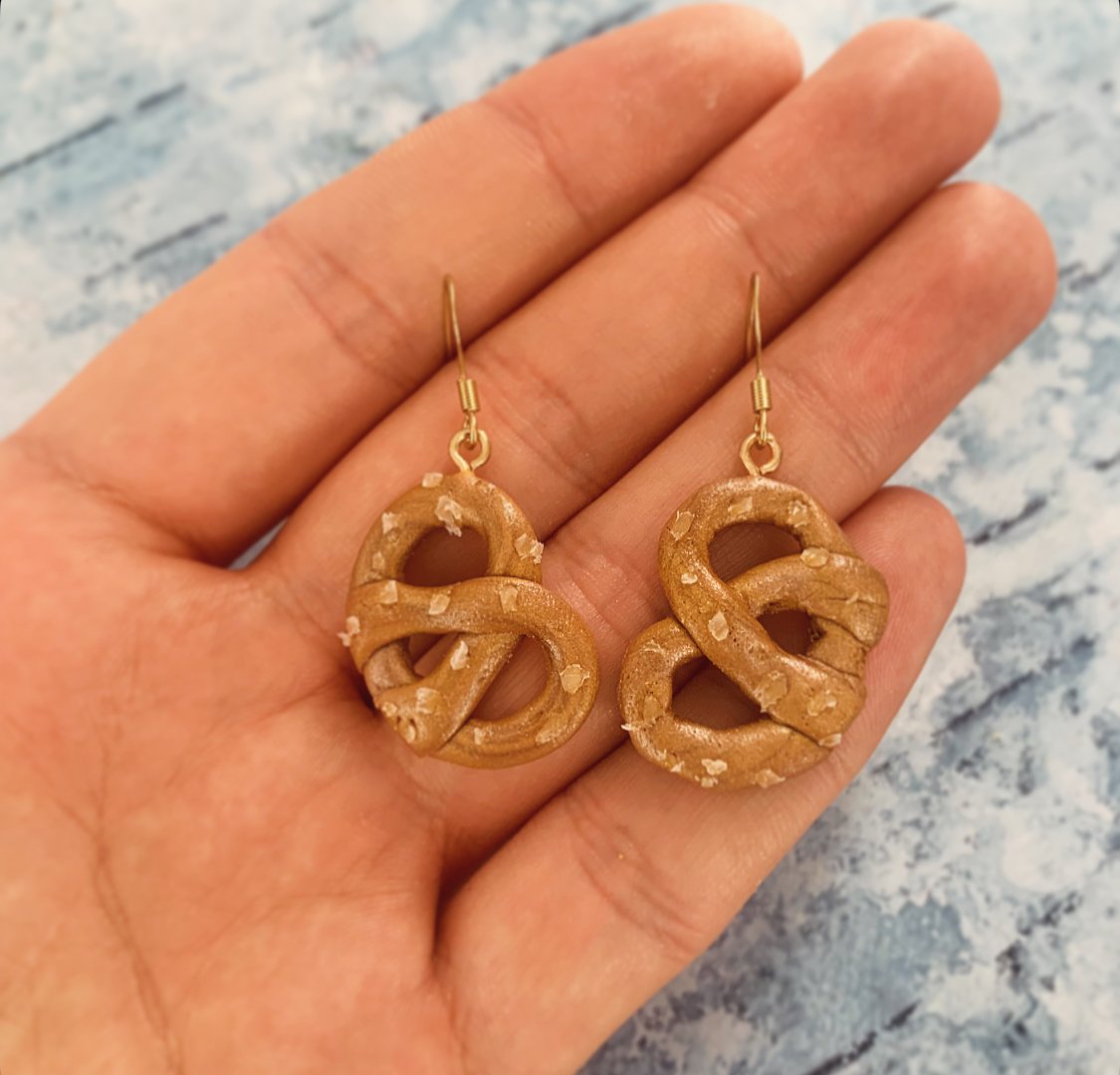 Ezek az élethű sós perec formájú fülbevalók garantáltan feldobják a napodat! A polímer agyagból kézzel készített, aprólékosan kidolgozott darabok tökéletes választás azok számára, akik szeretik a humoros, ugyanakkor stílusos kiegészítőket. A finoman aranyló barna árnyalat, a szórt “só” és a precízen formázott részletek egy igazi péksüteményre emlékeztetnek.