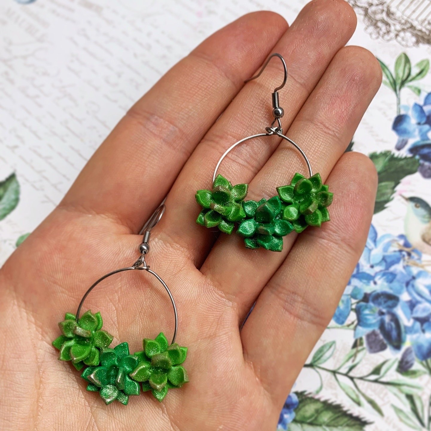 Természet ihlette kézműves fülbevaló, amely aprólékosan kidolgozott, zöld pozsgás növényeket tartalmaz. Elérhető dugattyús és kampós verzióban, hogy igazodjon a stílusodhoz.